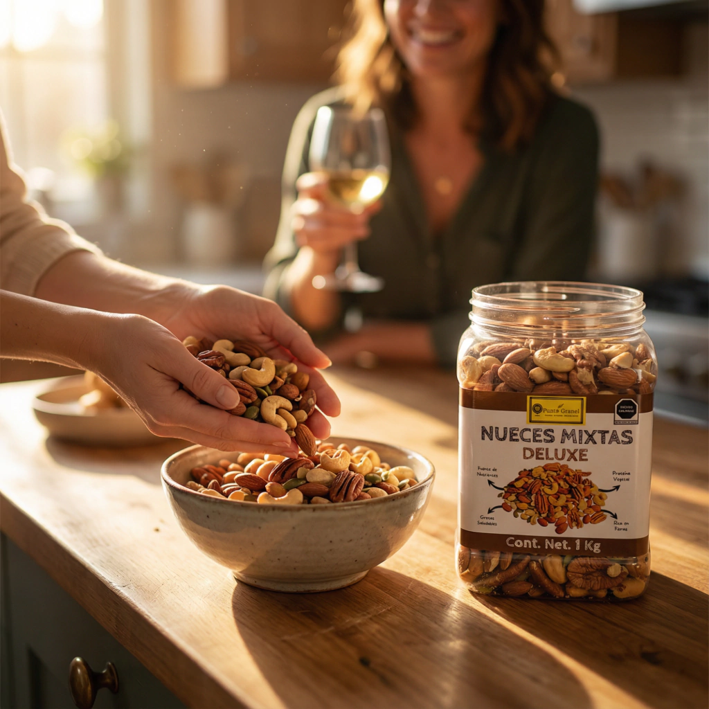Ideal para elevar tus reuniones como una botana sofisticada, para llevar energía extra a la oficina o simplemente para disfrutar un momento gourmet en casa. Su composición superior, con menos relleno y más nueces selectas, lo convierte en la alternativa definitiva frente a los mixes convencionales.
